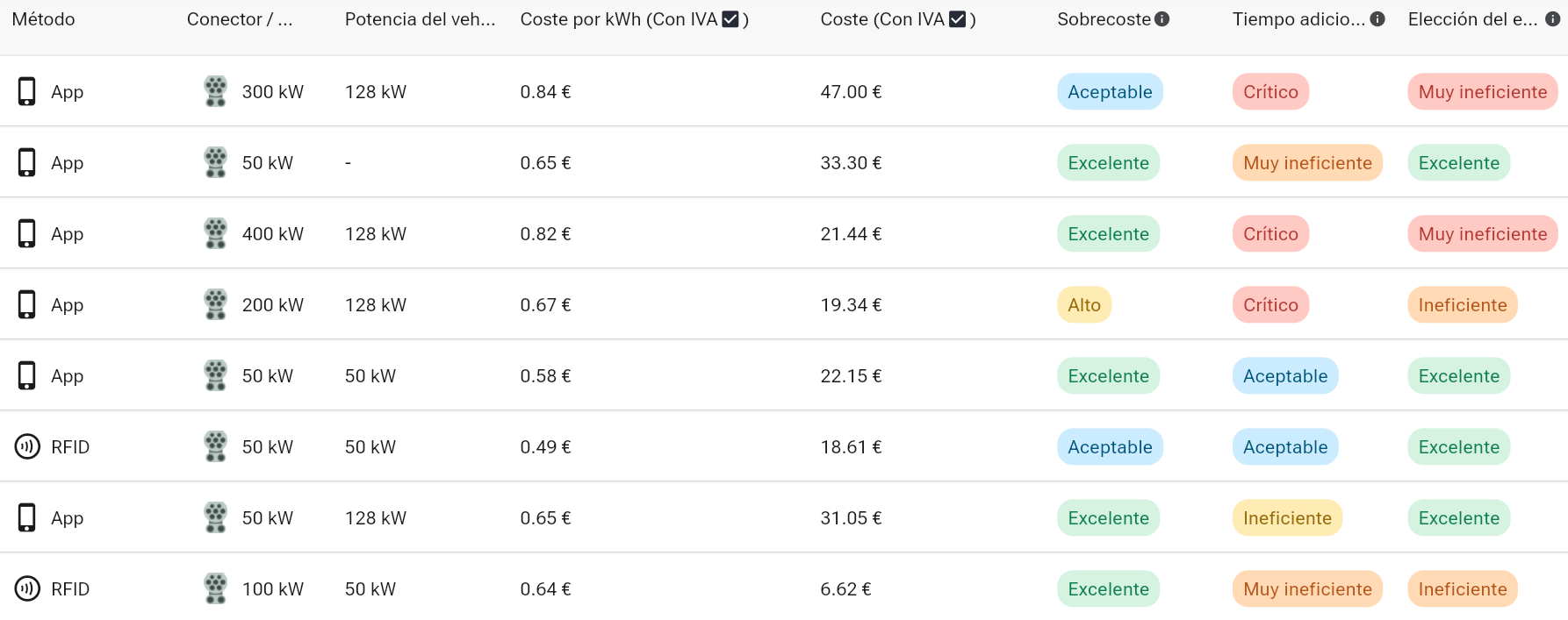 - Consulta el TOP 10 de los puntos de carga más económicos en la ubicación del conductor.